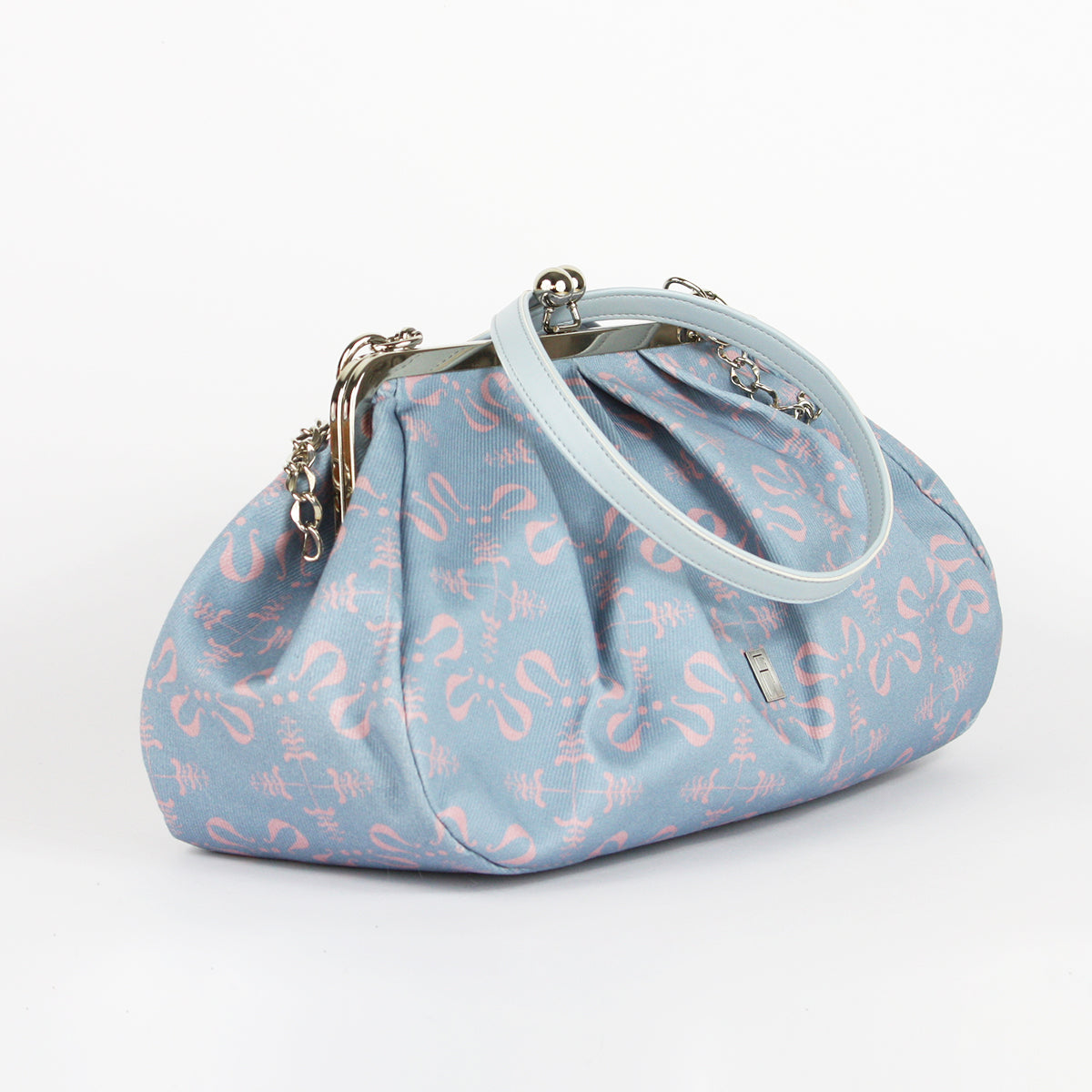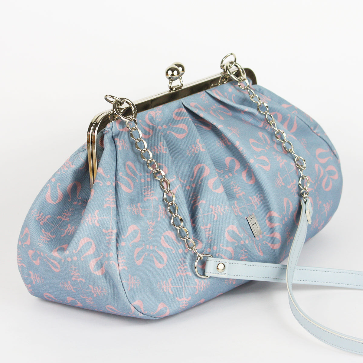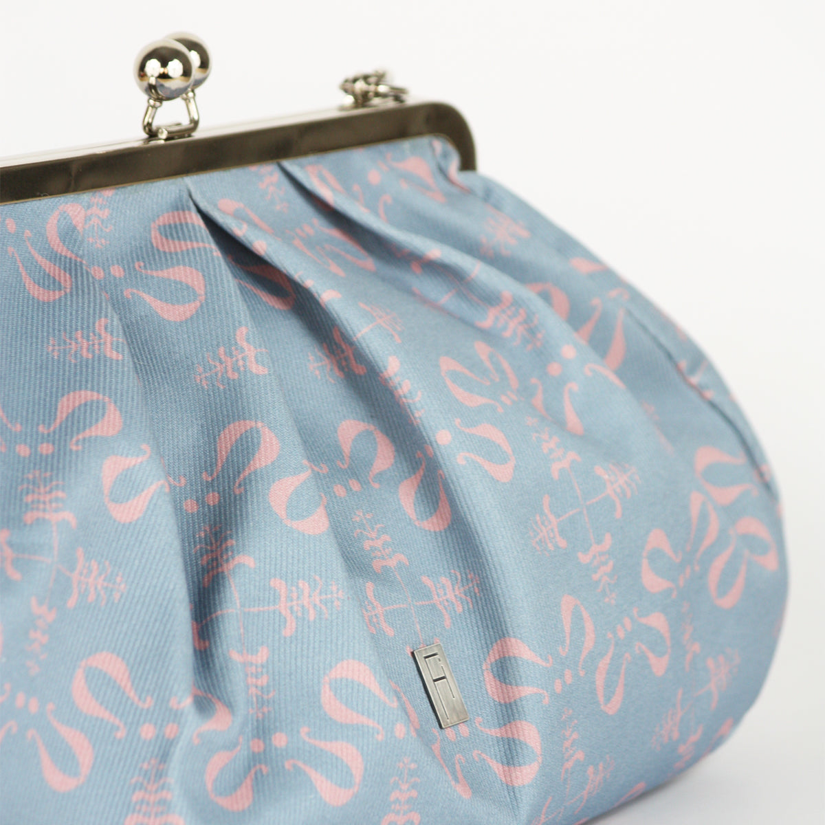 Izdelana je iz visokokakovostnega bombaža z unikatnim potiskanim vzorcem in se zapira s kovinskim okvirjem, ki ji daje pridih nostalgije in brezčasne elegance.