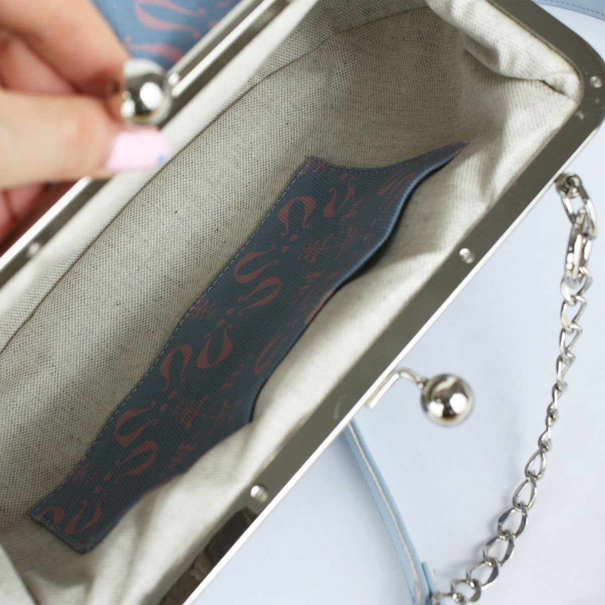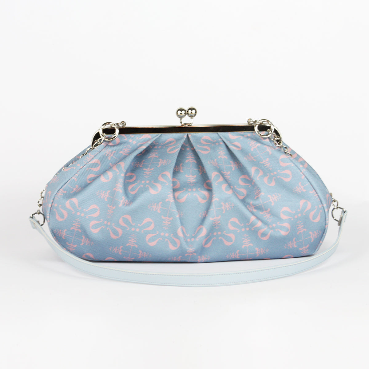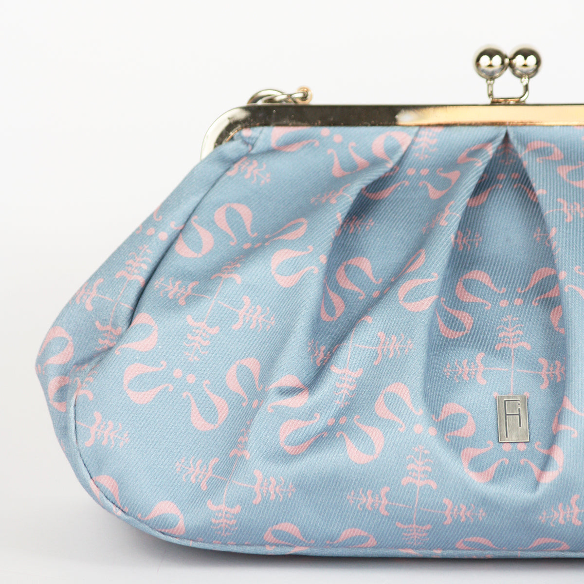Izdelana je iz visokokakovostnega bombaža z unikatnim potiskanim vzorcem in se zapira s kovinskim okvirjem, ki ji daje pridih nostalgije in brezčasne elegance.